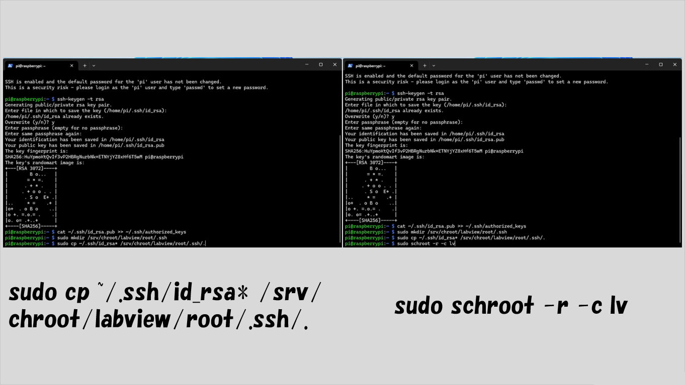 sudo cp ~/.ssh/id_rsa* /srv/chroot/labview/root/.ssh/.