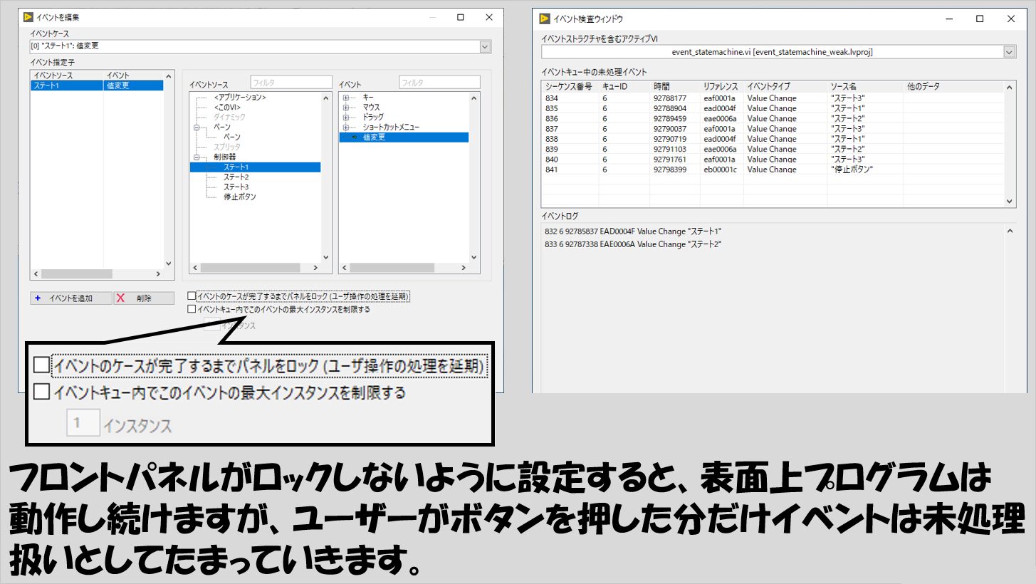この記事でも紹介しますがイベントストラクチャ使用上の注意点(フロントパネルロックなど)があらかじめわかっている状態であればそれで十分です。