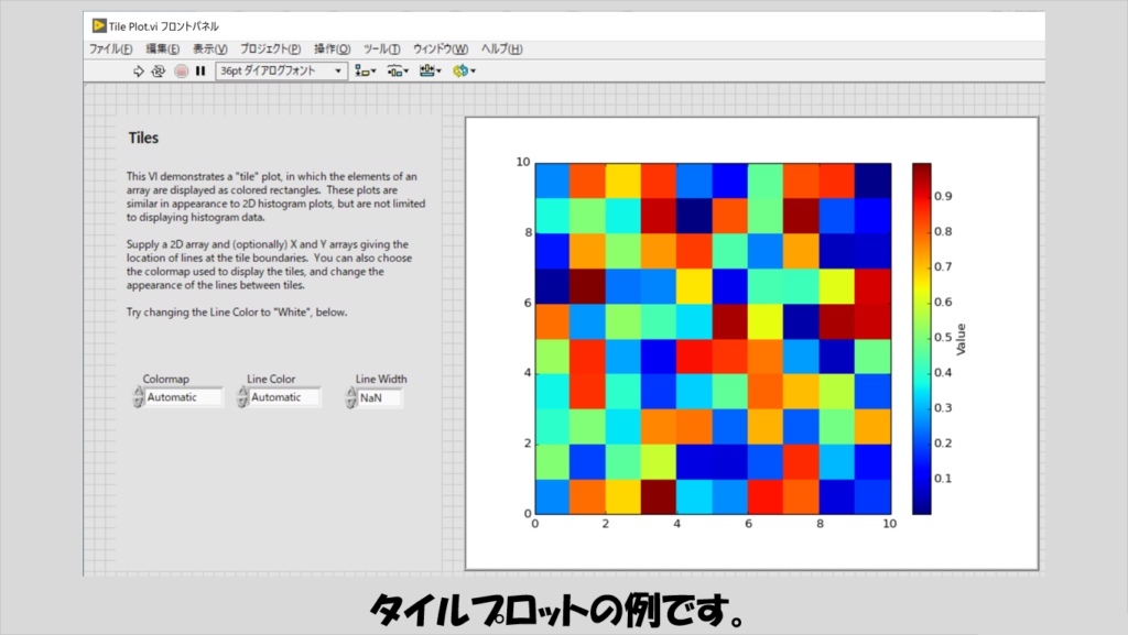 各プロット表現の実装方法はサンプルのブロックダイアグラムを参考にしてみてください。