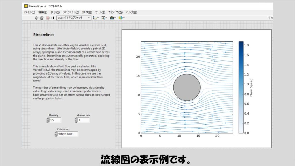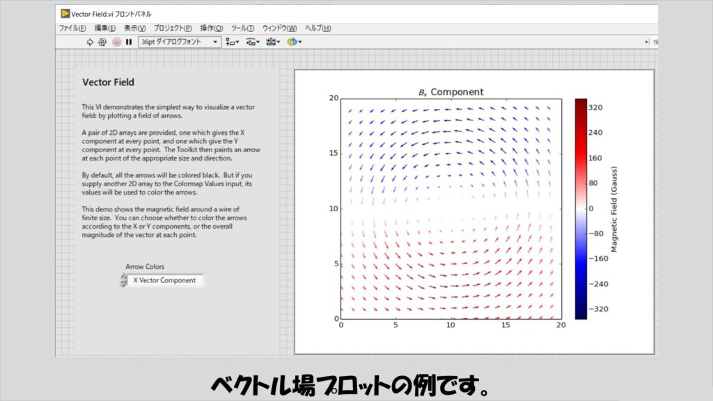 流線図と似ていますが、磁場を表現するときに使用するようなベクトル場の表現も可能です。