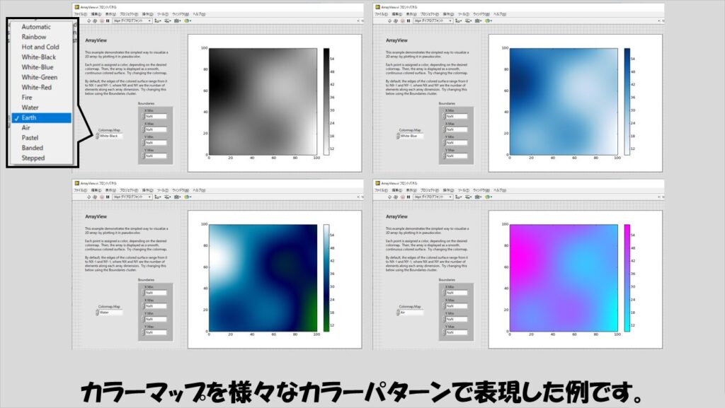 表示方法として一番目に付くのはカラーマップかと思います。