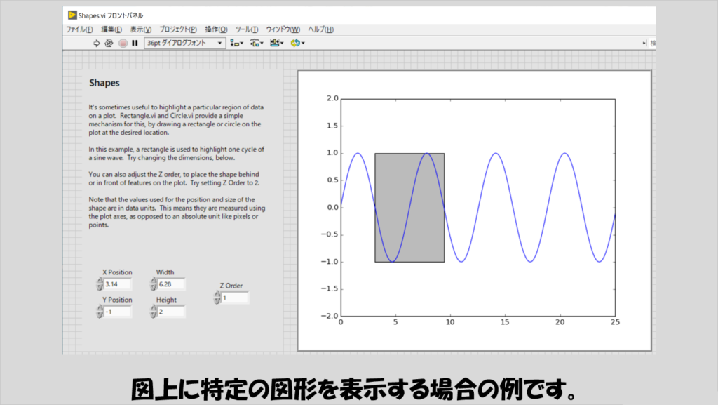 LabVIEWの波形グラフでもできなくはないですが、ピクチャでの表現の方が鮮やかです。