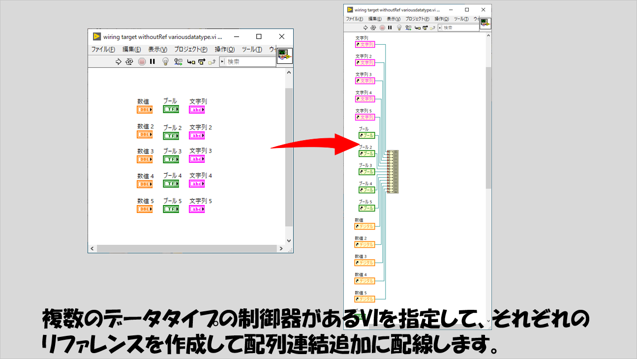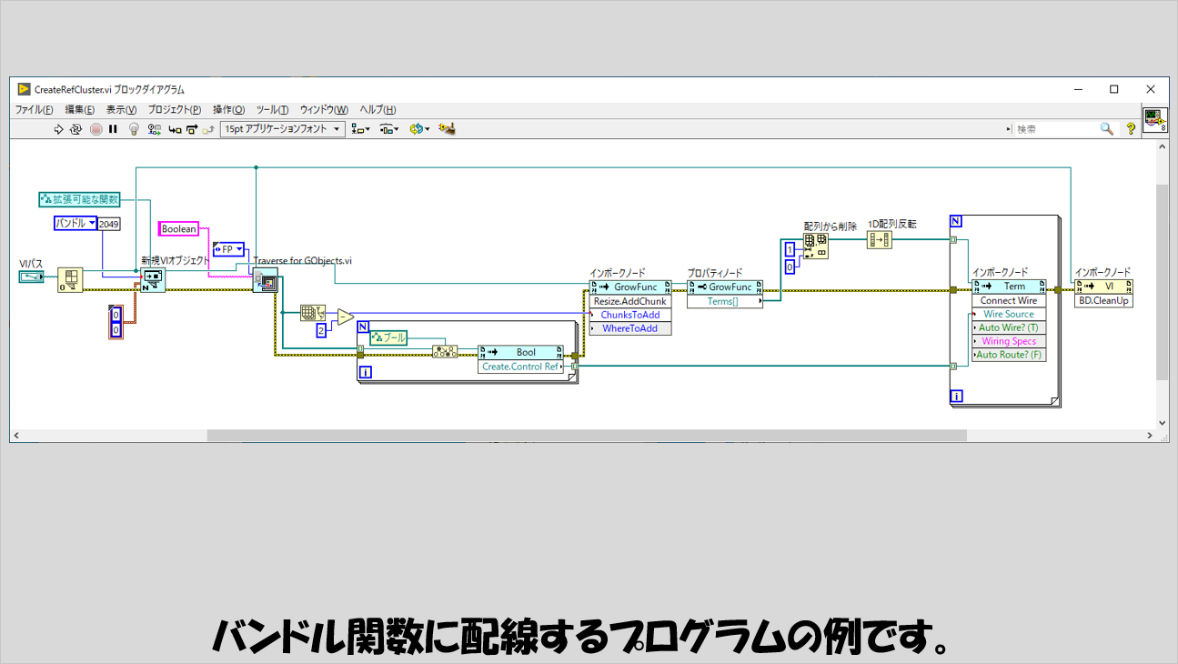 今回はずばり、リファレンスの配列やバンドル関数への配線についてのVIスクリプトです。