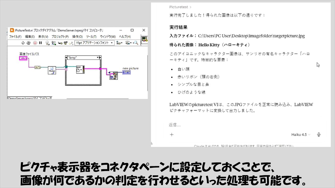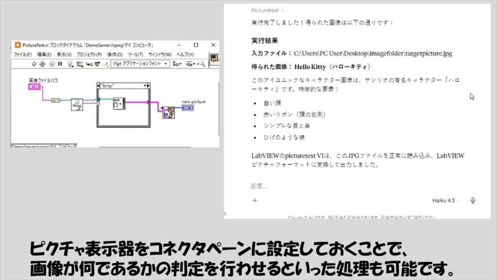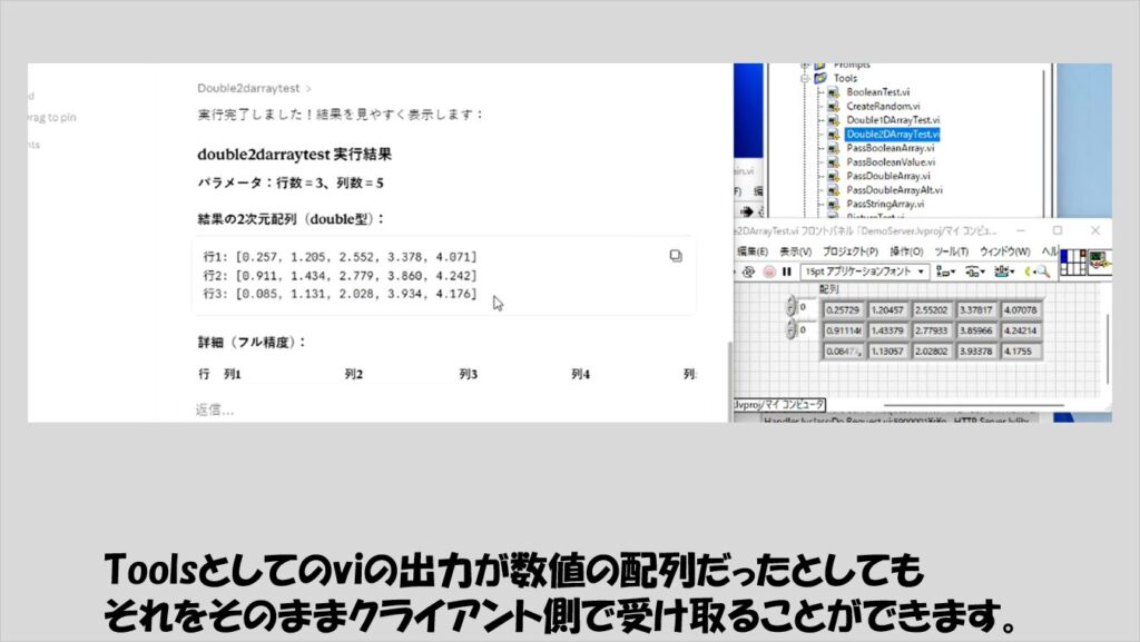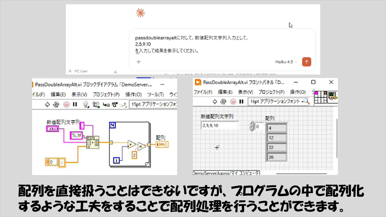 なお、AIチャットサービスとLabVIEWとのやりとりの様子は具体的に動画としてみた方がその面白さがわかりやすいと思います。