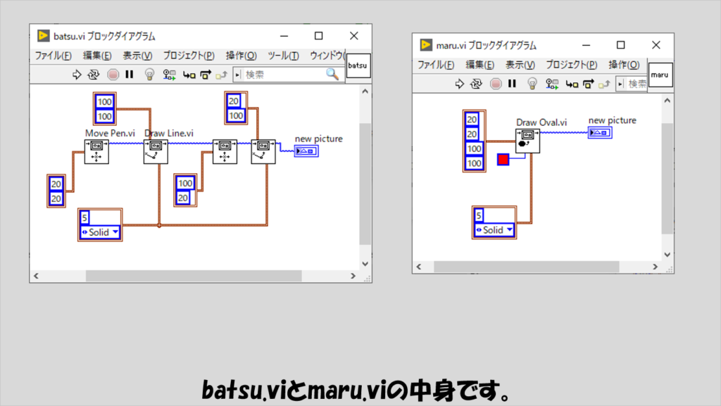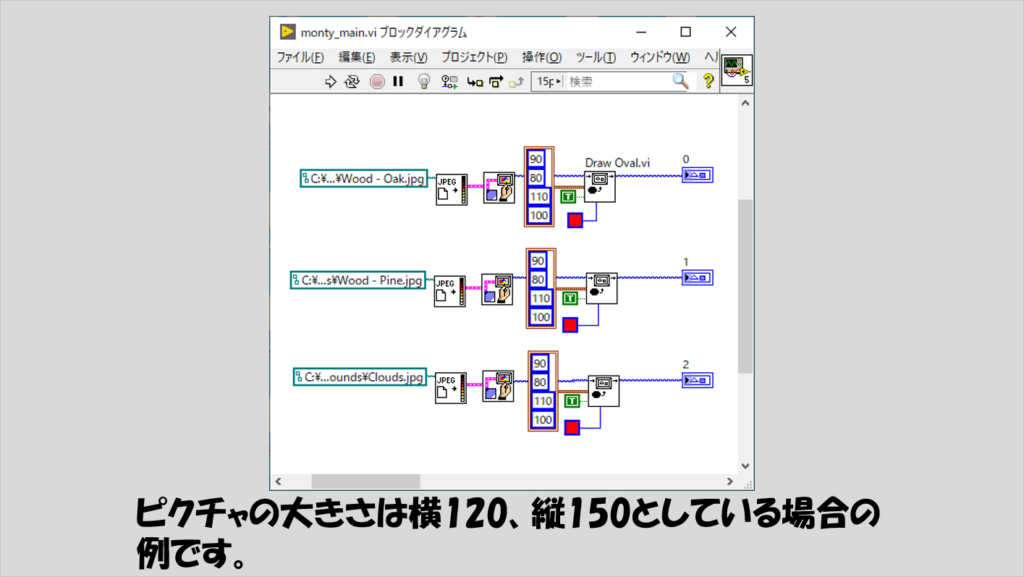 Draw Oval.viと書いてあるのは楕円を描くための関数で、今回はドアノブを表現しています。